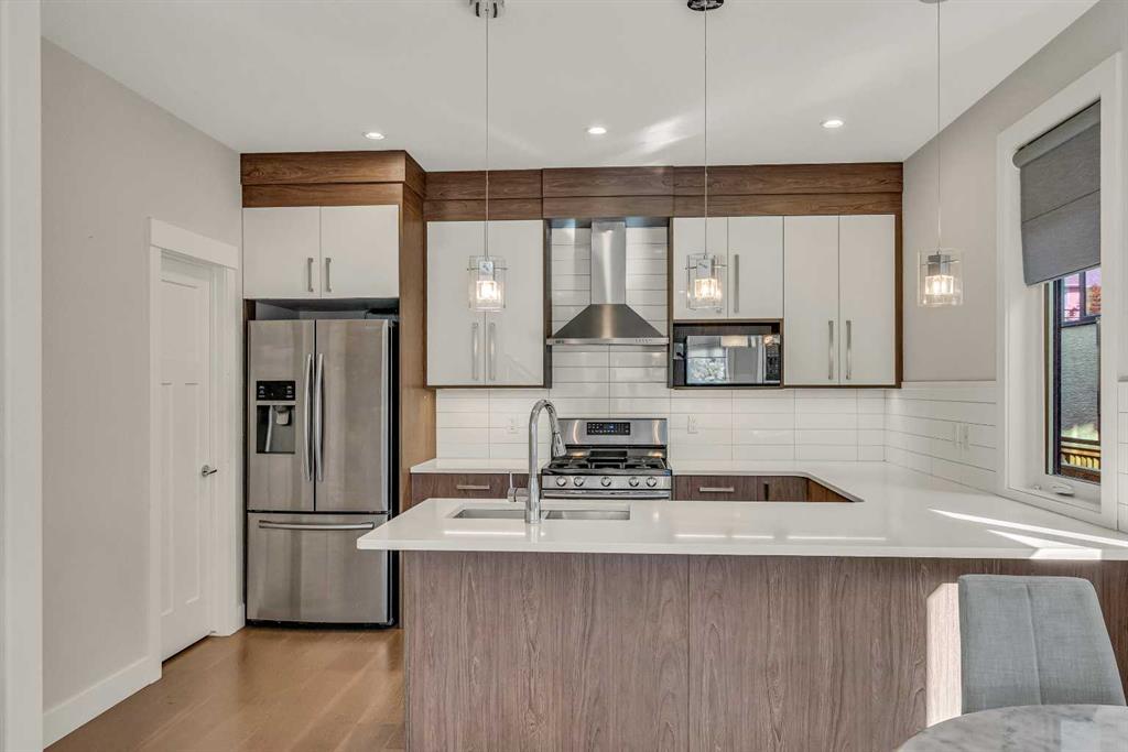 ***OPEN HOUSE: Sunday, January 11th 2:30pm - 4:30 pm*** FRONT UNIT with WEST EXPOSURE, CENTRAL AC, and a thoughtful layout designed for comfort and flexibility. NATURAL LIGHT fills the main level where a front living room overlooks the street and a GAS FIREPLACE with floor-to-ceiling tile adds a relaxing focal point. Wide-plank HARDWOOD floors extend into a central dining area with a table and chairs included. The modern kitchen is appointed with QUARTZ COUNTERTOPS, a peninsula island, GAS STOVE, FULL HEIGH...