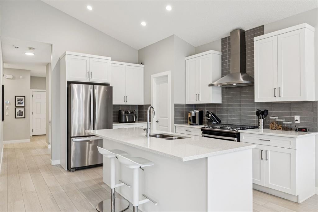 RARE! SPACIOUS BUNGALOW WITH ATTACHED DOUBLE GARAGE THAT BACKS ONTO TREED RESERVE! This home features vaulted ceilings in the main level, loads of sunny windows and a functional floorpan. BASEMENT FULLY FINISHED BY BUILDER. Exceptional design with modern colours and finishes. Kitchen boasts quartz counters, a gas range and loads of counter space. Open to the dining and living spaces, this is ideal for entertaining. Living room with cost gas fireplace and views of the trees on the reserve out back. Dining ro...