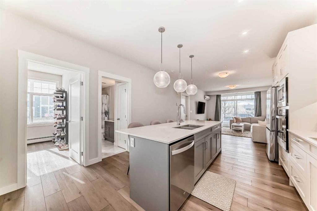 Welcome home to this IMMACULATE ground floor corner unit that features TWO bedrooms, TWO bathrooms, TWO parking stalls, A/C, and just under 1000 sq ft! Wide open floor plan on this beautiful unit and the proximity to ALL of the amenities is hard to beat...close to EVERYTHING! Hospital, the LAKE, VIP Theatre, numerous bars, restaurants, shops, YMCA, parks, playgrounds, transit, school and so much more! As you enter this home you have a small hallway that leads to the living space with the amazing kitchen bei...