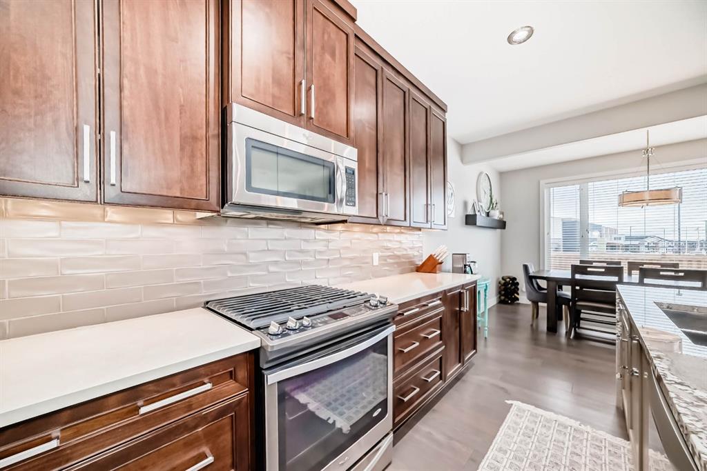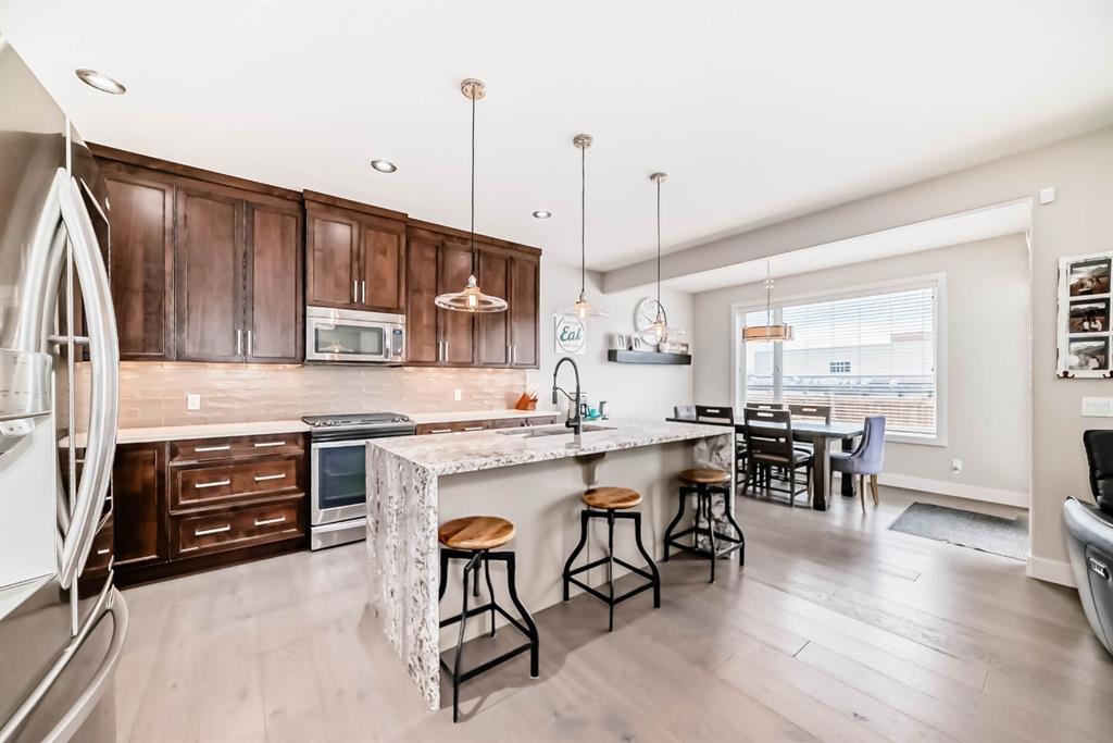 This home is a true 10/10—pride of ownership is evident throughout and BEST VALUE in Fireside! Originally a Janssen Showhome and still with the original owners, this impeccably maintained property has it all! Step into the spacious foyer and immediately notice the soaring 9-foot ceilings and impressive 8-foot doors on both the main and upper levels. Rich hardwood flooring flows seamlessly into the open-concept living and kitchen areas. The kitchen features custom wood cabinetry with under-cabinet lighting, ...