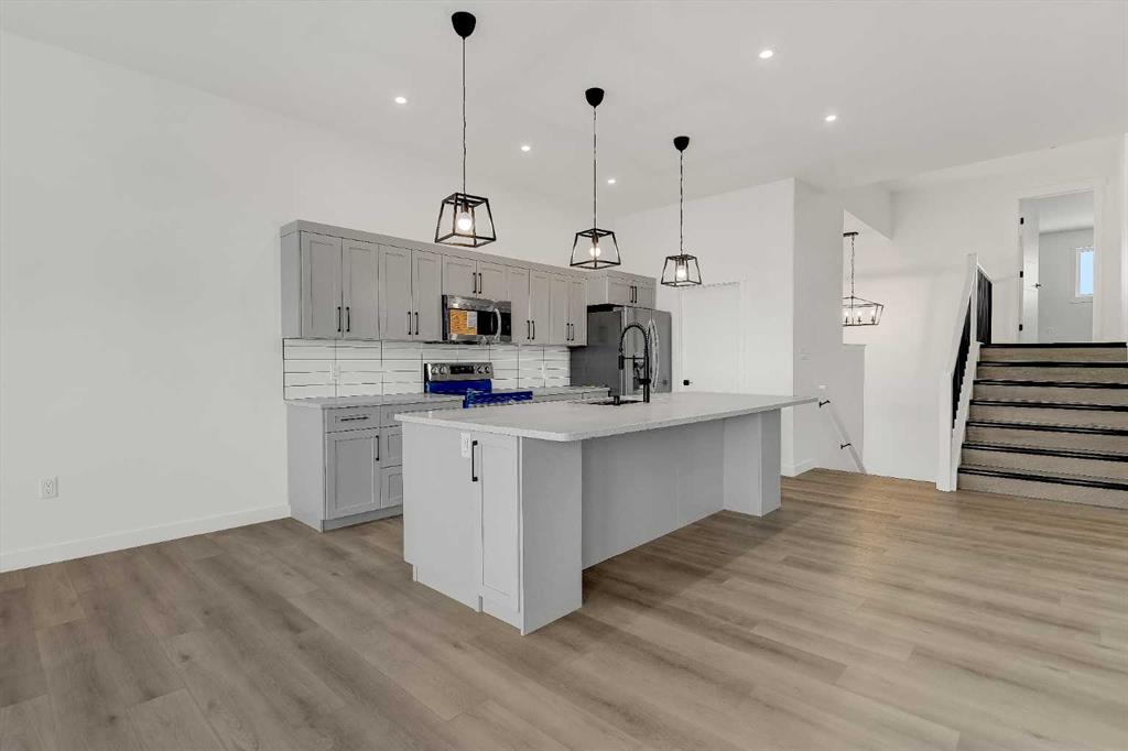 This 2040 sq/ft modified bilevel has a wide open floor plan with plenty of room for the whole family. Kitchen has a large island, granite counter tops, grey cabinets, stainless appliances, and a walk in pantry. Living room has fireplace and large windows for plenty of natural light. Master bedroom over the garage has a 5 piece ensuite and massive walk in closet. A three piece bathroom, and 2 large bedrooms complete the main floor. There is no shortage of closets and storage in this home. The triple car g...