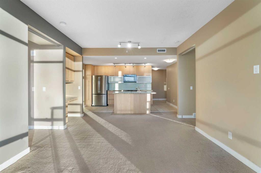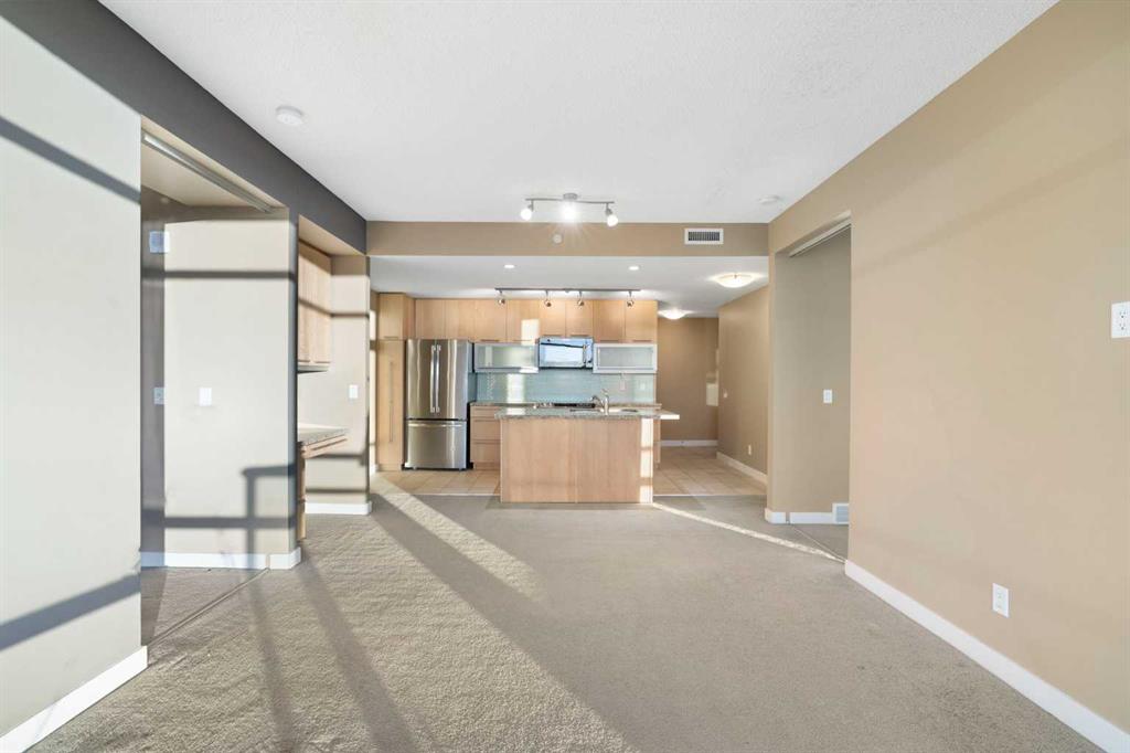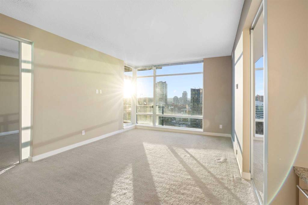 Welcome to Unit 1503 at 215 13th Ave SW. Offered for the first time since new, this spacious 2-bedroom, 2-bathroom condo features over 900 sq. ft. of stylish, open-concept living with breathtaking unobstructed mountain and full city skyline views. The thoughtfully designed layout offers dual primary suites, including a large main bedroom with walk-in closet and tiled ensuite shower with natural light and views. The second bedroom has convenient access to the main bath, making it ideal for guests or roommat...