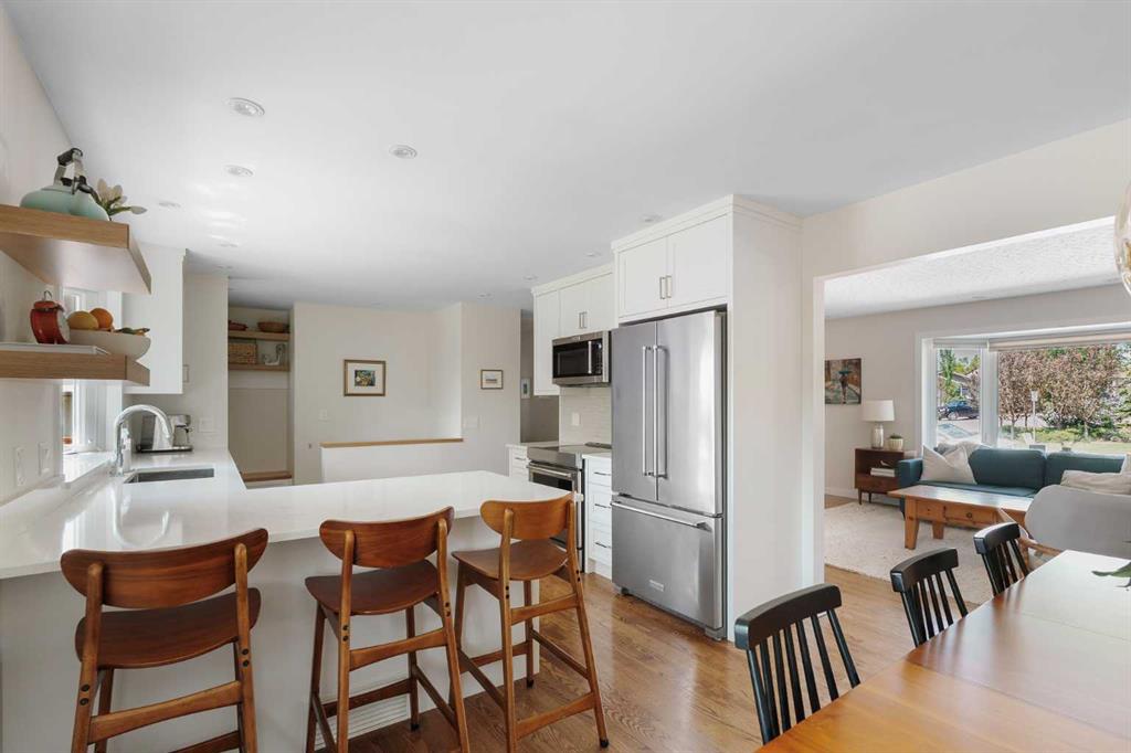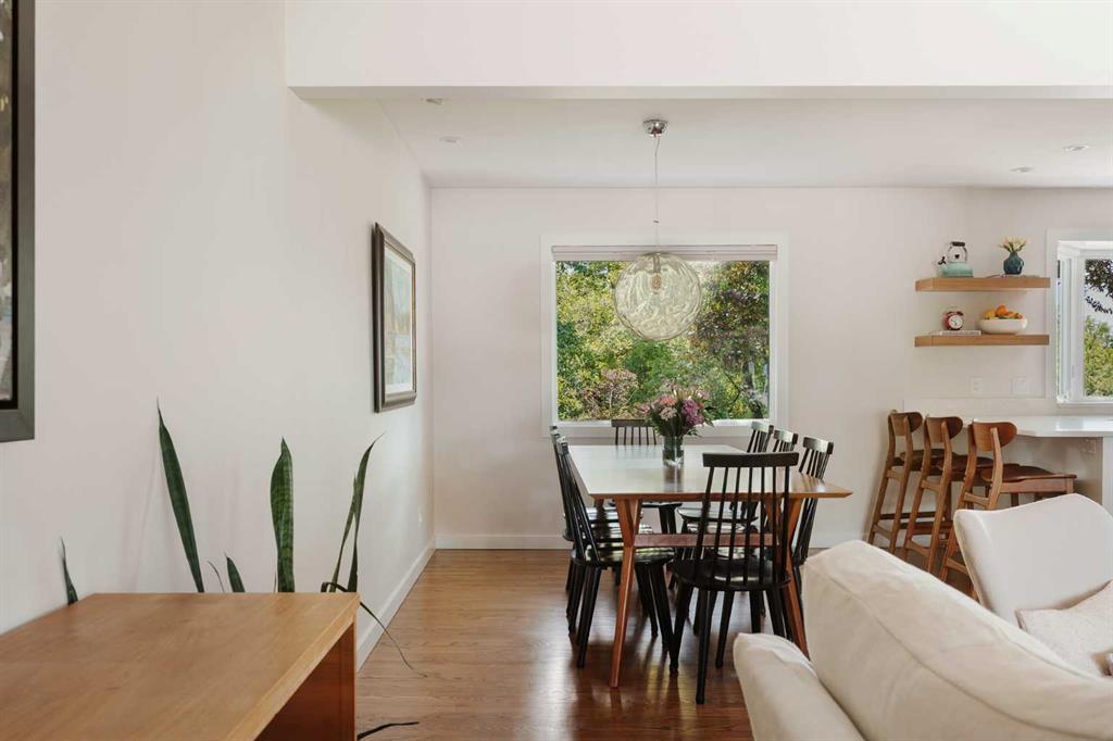 This updated bungalow situated in St. Andrews Heights, one of Calgary’s most established inner-city communities, spans a 6,049 sqft southwest lot. Inside you’ll see where timeless character meets elevated modern finishes. The redesigned kitchen features a peninsula layout, quartz countertops, stainless steel appliances, a garden window, white cabinetry, glossy subway tile, and open shelving. A custom mudroom area with built-in cabinetry sits just off the kitchen. Hardwood flooring flows across the main leve...