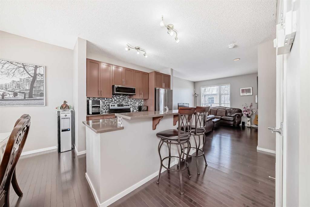 WELCOME TO THIS REALLY NICE TOWNHOUSE IN THE COVETED AREA OF CHAPARRAL. TWO PRIMARY BEDROOMS WITH ENSUITES, DBL GARGE ( RARE) FRONT PATIO AND BALCONY, FINISHED PARTIAL BASEMENT, AND MANY UPGRADES. This beautiful townhome features an open-concept, sleek design and finishes, with a modern look. Walking in, you will appreciate the hardwood flooring and big windows that let natural light stream in, along with newer blinds. The kitchen has SS appliances featuring a large double-door refrigerator with water, ...