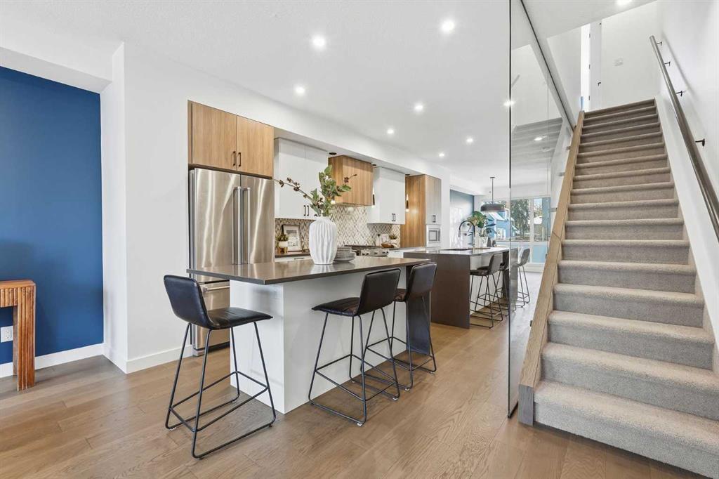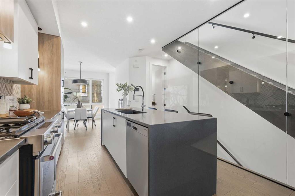 Sophisticated and upscale, this 3 bedroom townhome is nestled in the desirable inner city community of Bankview, offering SPECTACULAR CITY AND DOWNTOWN VIEWS along with over 2,600 sq ft of beautifully designed living space. The open main level is ideal for entertaining, featuring hardwood floors, lofty ceilings, and stylish lighting. A spacious dining area flows seamlessly into the well appointed kitchen, complete with quartz countertops, two large islands providing exceptional prep space, abundant storage,...