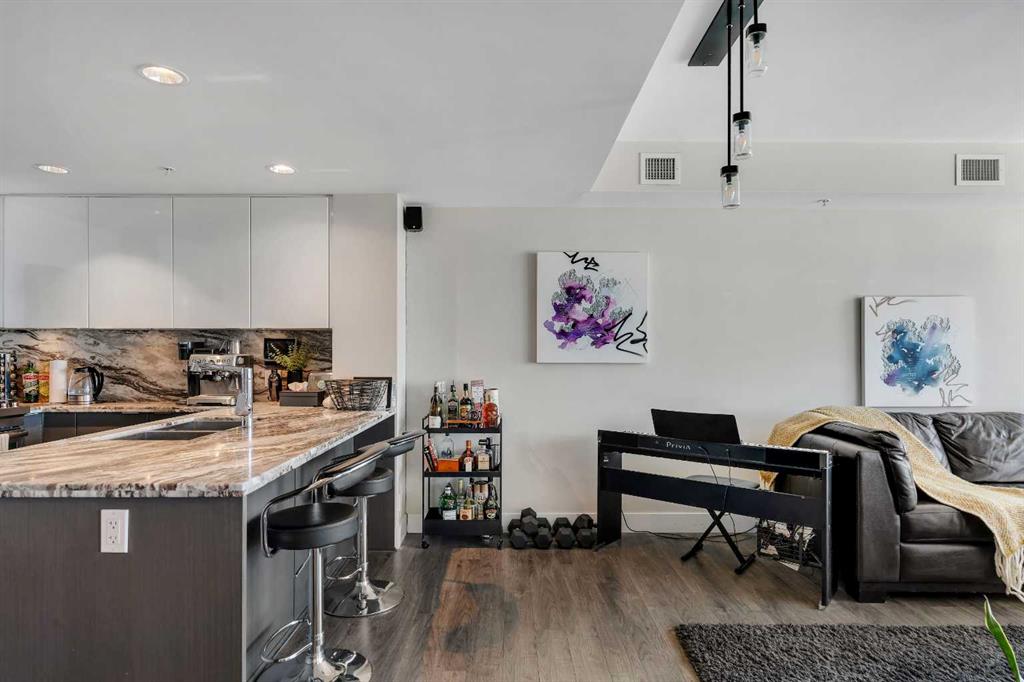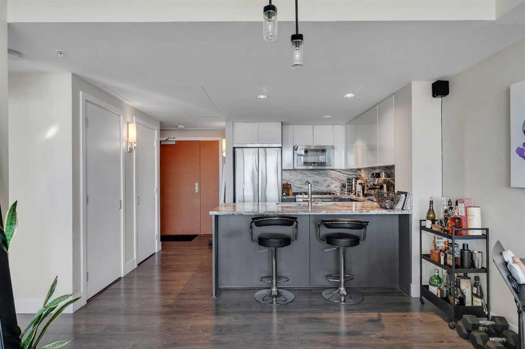 Life in East Village connects modern design with one of Calgary’s most dynamic urban settings, where river pathways, culture, and dining sit just steps from home. South exposure fills this upgraded residence with natural light while showcasing sweeping skyline views that define the downtown experience. An open-concept layout brings everyday living and entertaining together with ease, anchored by a chef-inspired kitchen designed for both function and style. Full-height cabinetry extends storage, granite coun...