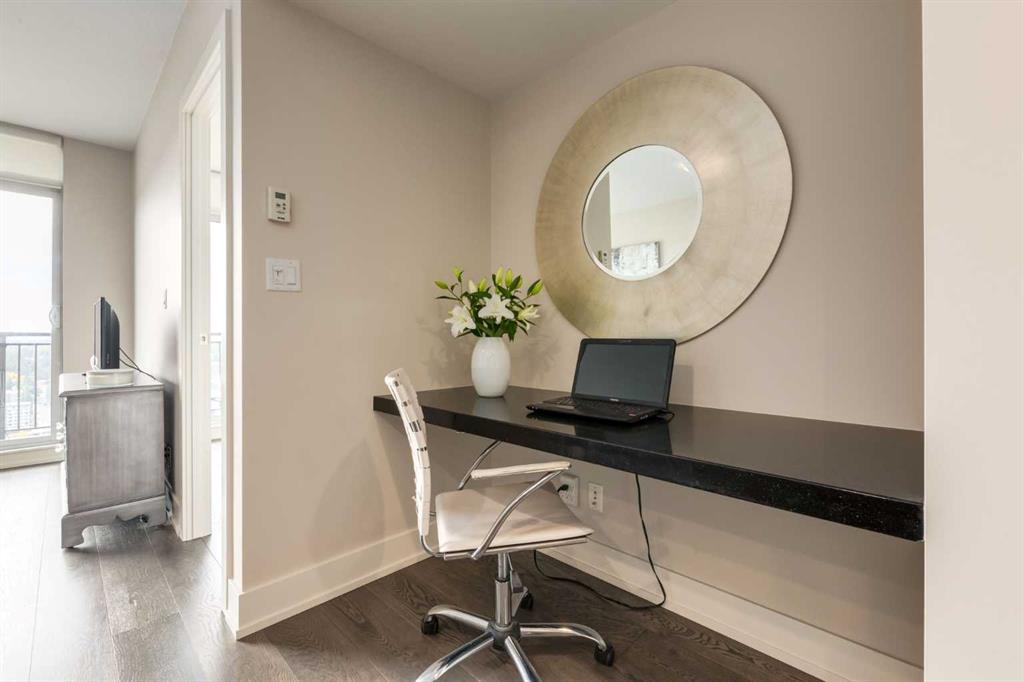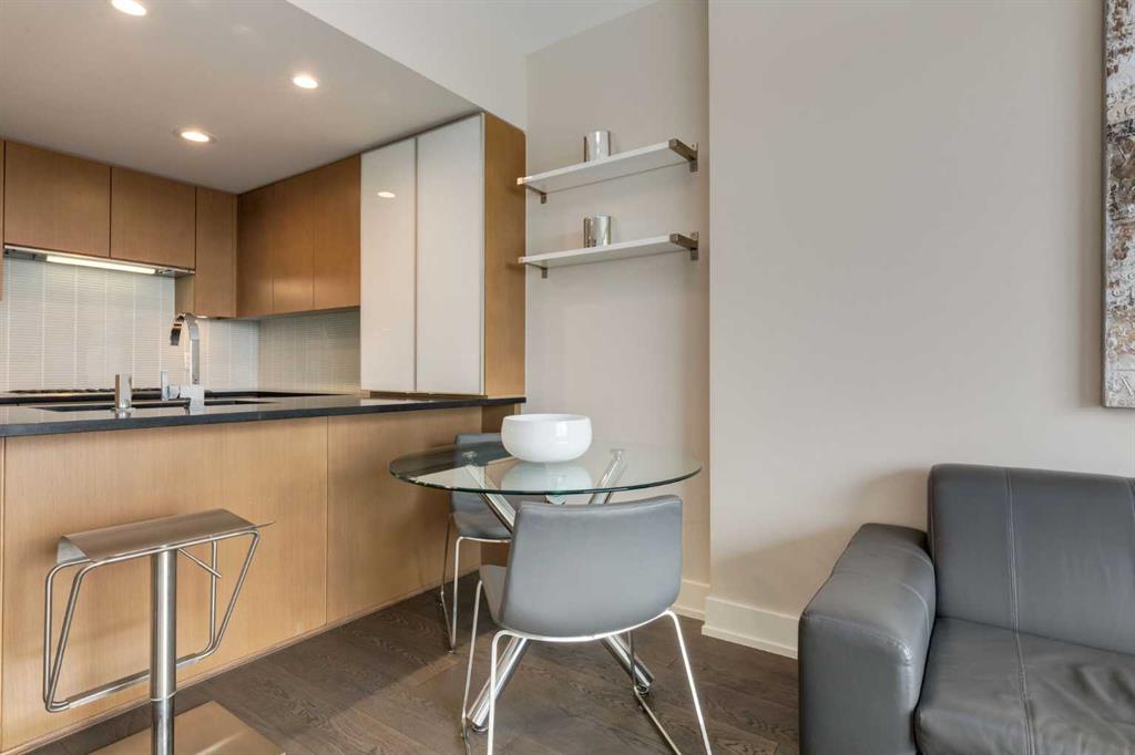 Take in the VIEWS from this 26th floor suite in LUNA in the heart of Calgary's Beltline. Original owner is selling this contemporary and bright suite with south facing balcony. An efficient use of space, this one bedroom offers quality finishes in an amenity rich building. Interior features include wide plank hardwood flooring, updated LED lighting, soft close cabinetry, quartz countertops, full height glass tiling in kitchen, Fisher Paykal stainless refridgerator, gas stove top and convection oven, heat...