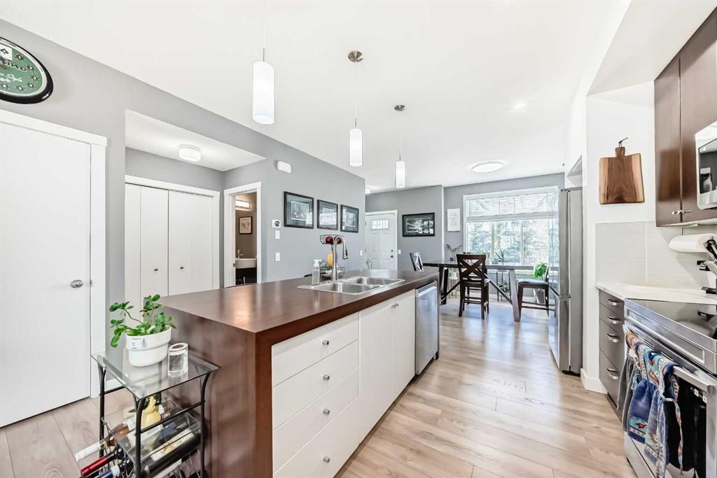 Welcome to this incredible, RENOVATED END UNIT, steps from the pond in beautiful Copperfield. This very spacious 2 storey has an open floorplan with 9 foot ceilings on the main, two enourmous primary bedrooms, each with their own walk in closet on the second floor as well as a full laundry room and unique 'double' 5 piece bathroom. The basement has lots of storage space and a flex room with window. Best of all, there is an almost 19x19 DOUBLE GARAGE, drywalled and insulated, with large parking pad. No need ...