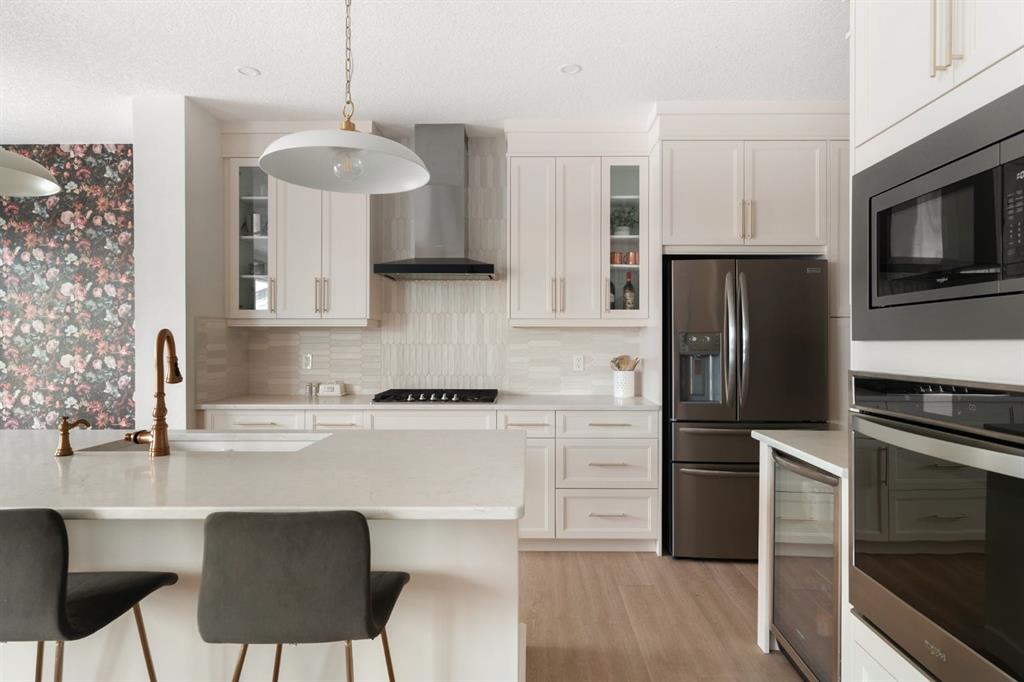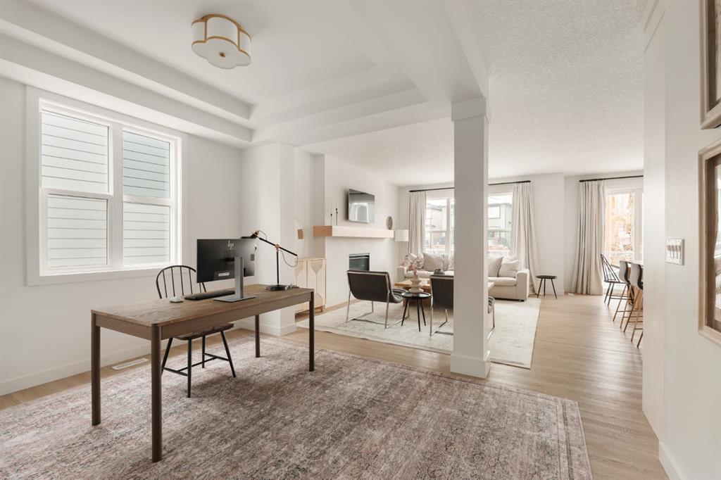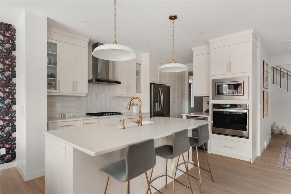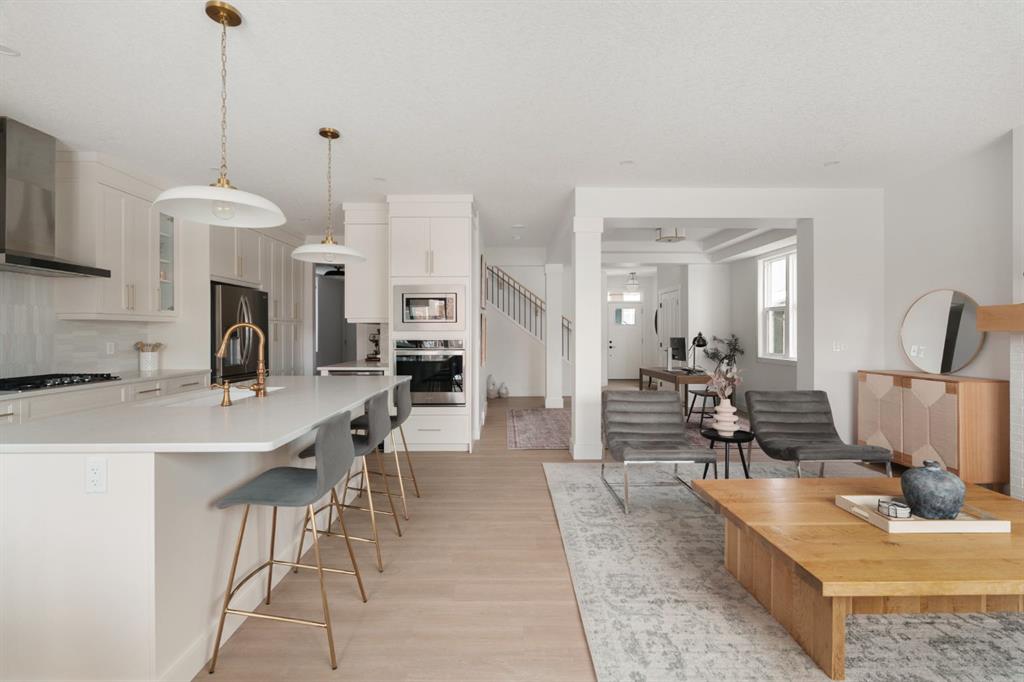 Welcome to this stunning, fully finished walkout home in the highly sought-after community of Cranston’s Riverstone, offering over 3,450 sq ft of thoughtfully designed living space and exceptional upgrades throughout. From the moment you step inside, you’re greeted by a spacious front entrance and a striking open-to-below staircase that sets the tone for this elegant home. Luxury vinyl plank flooring flows through the main floor, featuring a versatile formal dining room with a sophisticated double tray ceil...