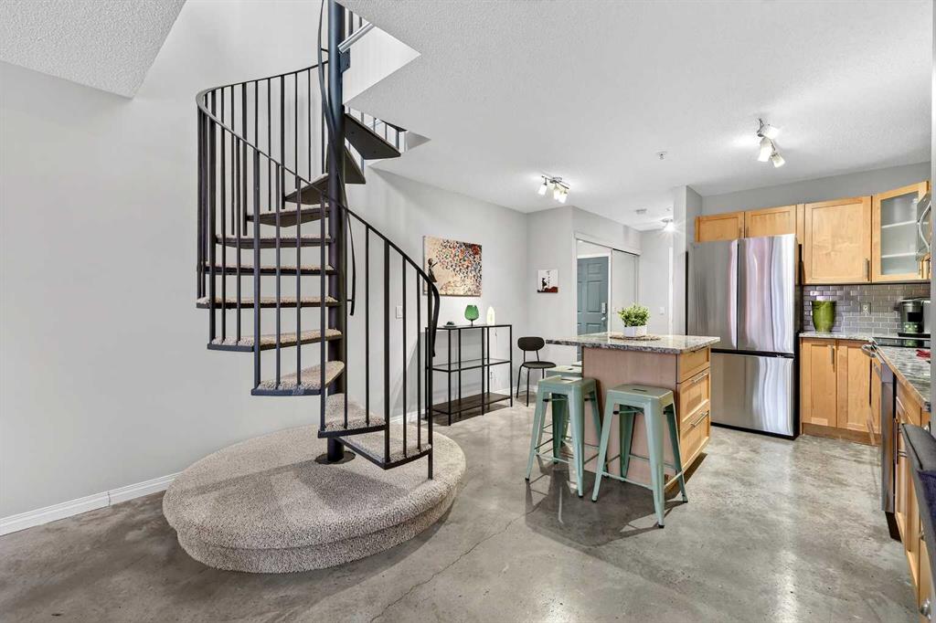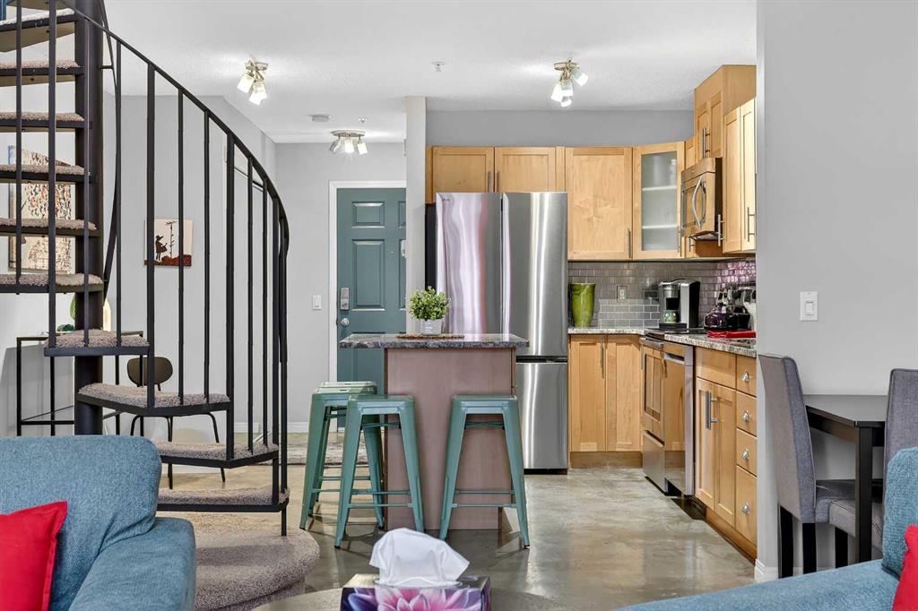 URBAN LOFT living in the heart of coveted MARDA LOOP! This rare, TOP TWO FLOORS, multi-level apartment offers LOADS of SPACE and exceptional STYLE. Step inside the main level to a spacious, OPEN floorplan complete polished concrete floors, 2-pce powder room, massive double closet in large foyer, upgraded kitchen with GRANITE counters, ISLAND with room for stools, STAINLESS STEEL appliances including NEW fridge, NEW dishwasher and maple cabinets. Living room is generous size for ENTERTAINING with corner GA...