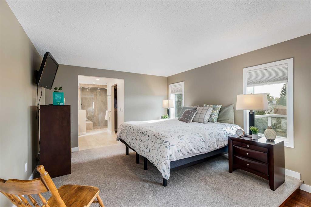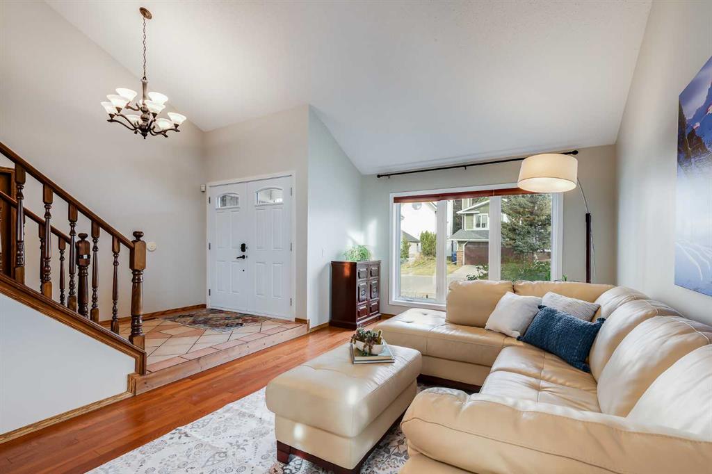 Nestled in the desirable community of Hawkwood, this elegant two-storey home offers over 3,600 square feet of developed living space designed for both family living and entertaining. With four bedrooms, three and a half bathrooms, an oversized double attached heated garage, and a fully finished basement, it combines thoughtful design with everyday comfort. A grand double-door entryway leads into the main floor, where rich hardwood flooring and a striking vaulted ceiling set the tone. The living room is fill...