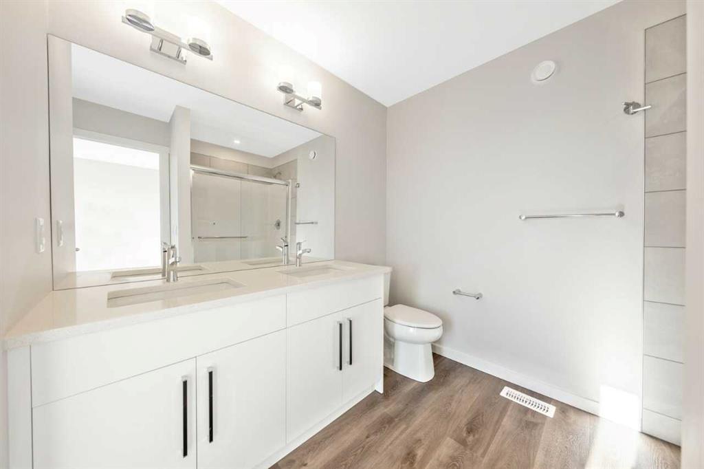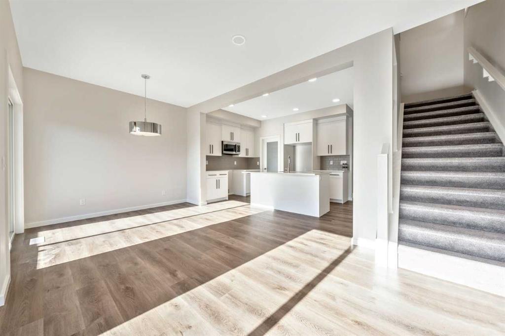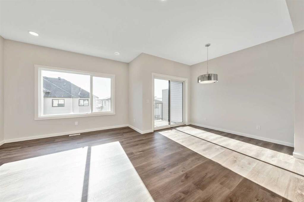 This home features a walkout lot with mountain views! The Eden is designed for contemporary living. Entering this home, you are welcomed by a half bath, closet and convenient walk-through mudroom and pantry leading to the central kitchen. The main floor opens up to reveal a spacious great room and dining area, leading to the covered balcony - a perfect retreat to enjoy year round. The second level boasts a primary bedroom with ample space, including an ensuite offering dual sinks and adjacent walk-in closet...