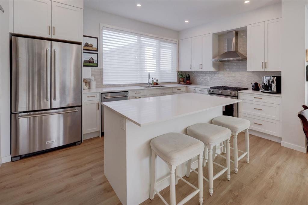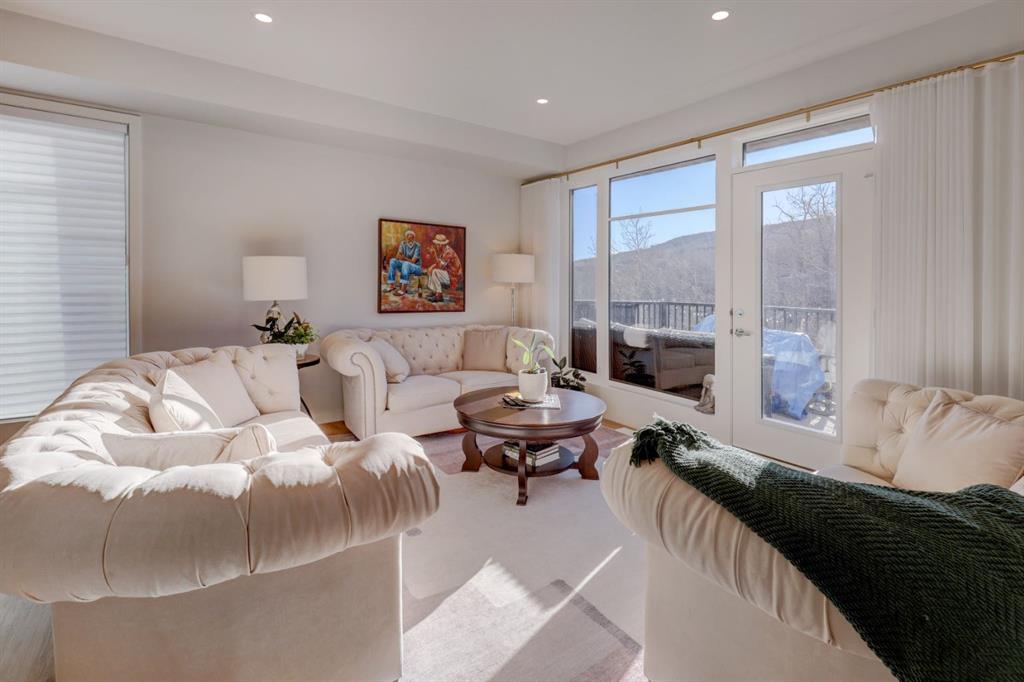 ***Please check out the Virtual Tour!***. Welcome to the community of Medicine Hill and the Village at Trinity Hills. One of Calgary's most elegant and sophisticated urban dwellings. This end unit town home comes with 1988 square feet of finished living space. The open floor plan flows seamlessly from the gorgeous living room with incredible vistas to the large dining room and gourmet kitchen. The kitchen has a large island, upgraded stainless steel appliances and granite countertops. The kitchen flow...