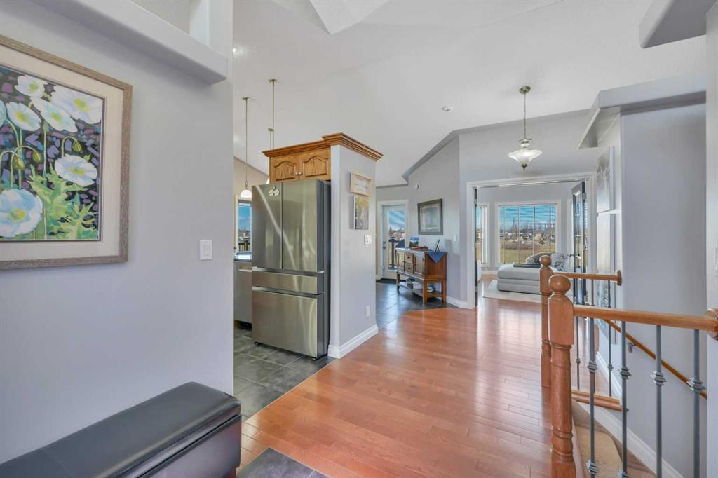 This spacious Executive Hillside Bungalow with a Walk-out basement, is located on a massive Corner Lot at the end of a Key Hole Close. Backing onto a City Reserve adjacent to neighborhood walking trails, this extraordinary home offers a terrific Cityscape View. Step into the spacious Tiled entry which leads to stunning hardwood floors and large windows that bathe the home in natural light. Vaulted ceilings add to the Luxury of this space. Custom Kitchen features a walk-in Pantry, Island with a raised eatin...
