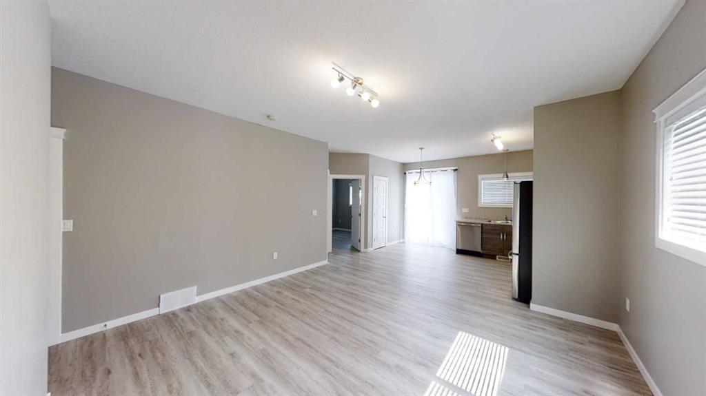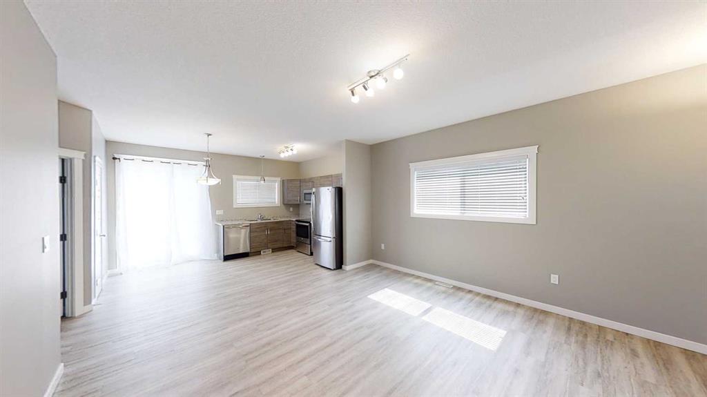 3 bedroom, 1 bathroom upper duplex located in Riverstone South. Like new home is open concept style, perfect for families! Kitchen has upgraded stainless steel appliances, vaulted ceilings and a pantry for extra storage! bedrooms located off main living areas. Vinyl plank throughout - no carpet!! Private in-suite laundry. Paved parking and street parking available. Insulated - not heated single car garage. Fully fenced back yard with a back deck! Water included. Application required prior to viewing.